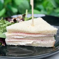 Thin-sliced ham, fontina cheese, creamy mayo – soft, cheesy, timeless.